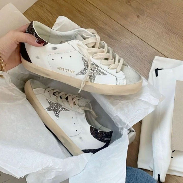Descubre las zapatillas Golden Goose Super-Star - Blanco con negro brillante, una pieza exclusiva de Golden Goose. Estas zapatillas son ideales para quienes buscan estilo y calidad.